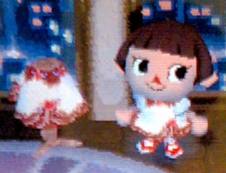 所や腰の所に付いている花は、最初はイチゴにしようかと