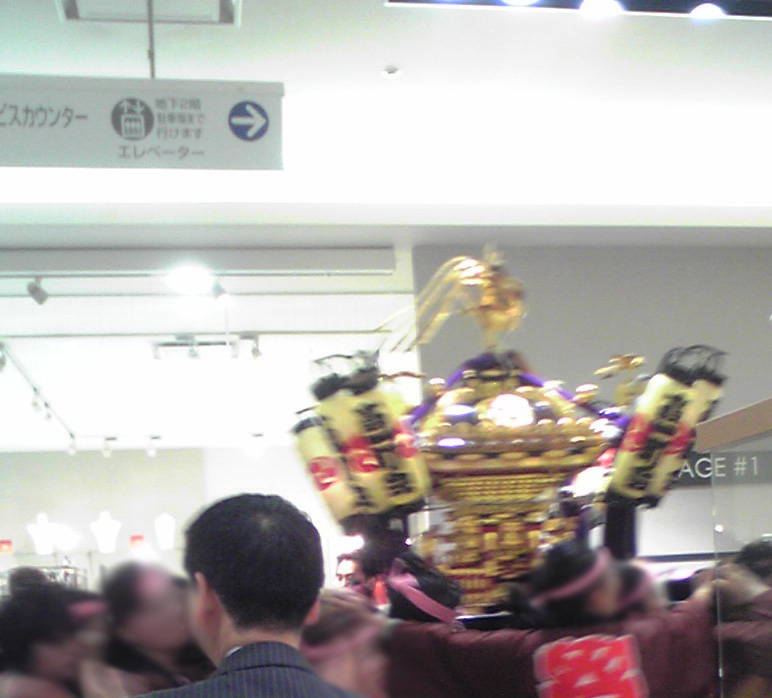 ……お神輿がいました。お神輿って、屋外で担ぐものというイメージがありましたが、こういう事もあるんですね。なお、店の外に出るときは担ぐ人がかがんでドアをくぐってました。そうじゃないと、お神輿かガラス戸のどちらかが傷ついてしまうので。